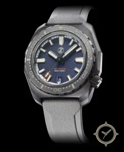 A Dive watch with a bold 48.5mm presence on the wrist, crafted from titanium featuring a blue dial with a unique grained / textured (sandpaper-like) finish.