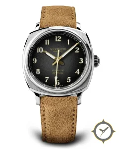 A Vintage watch with a versatile 41mm case, that suits most wrists, crafted from stainless steel featuring a black dial with a unique grained finish.