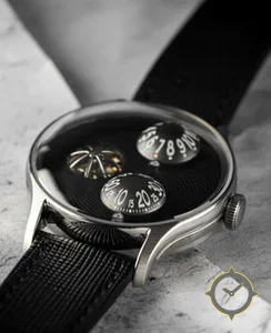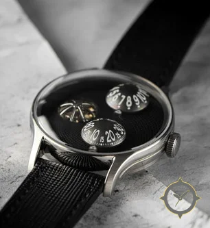 A Skeleton watch with a bold 43mm presence on the wrist, crafted from stainless steel featuring a black dial with a unique textured guilloché finish.