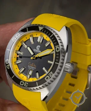 A Dive watch with a bold 45.5mm presence on the wrist, crafted from stainless steel featuring a black dial with a unique textured matte finish.