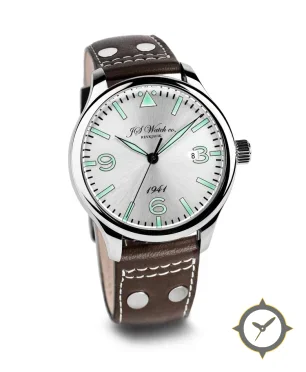 A Pilot watch with a bold 42.5mm presence on the wrist, crafted from stainless steel featuring a silver dial with a unique sunburst brushed finish.