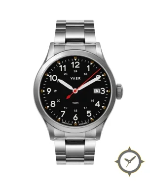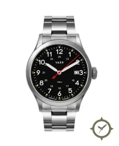 A Field watch with a versatile 39.5mm case, that suits most wrists, crafted from stainless steel featuring a black dial with a unique matte finish.
