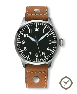 A Pilot watch with a vintage-inspired 36mm case, crafted from stainless steel featuring a black dial with a unique matte finish.