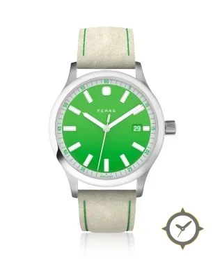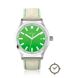 A Field watch with a bold 43mm presence on the wrist, crafted from stainless steel featuring a green dial with a unique gradient lacquer finish.