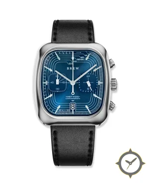 A Chronograph watch with a bold 42mm presence on the wrist, crafted from stainless steel featuring a blue dial with a unique sunburst with printed concentric track finish.