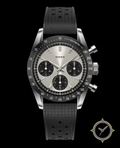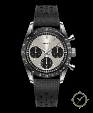 A Chronograph watch with a vintage-inspired 35.5mm case, crafted from stainless steel featuring a silver dial with a unique sunburst / brushed finish.