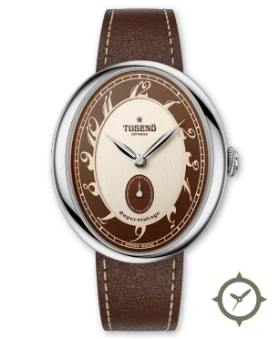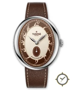 A Vintage watch with a vintage-inspired 33mm case, crafted from stainless steel featuring a brown dial with a unique grained (linen-like) finish.