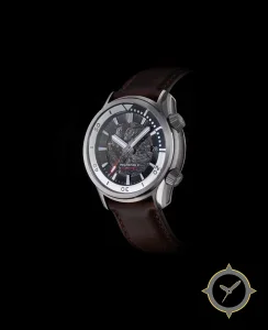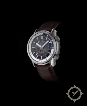 A Dive watch with a vintage-inspired 37mm case, crafted from stainless steel featuring a black dial with a unique meteorite-style textured finish finish.