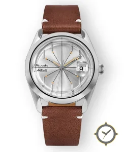 A Vintage watch with a bold 44.5mm presence on the wrist, crafted from stainless steel featuring a silver dial with a unique sunburst brushed (radial) finish.