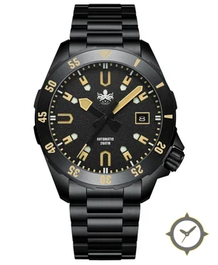 A Dive watch with a versatile 38mm case, that suits most wrists, crafted from stainless steel featuring a black dial with a unique grained finish.
