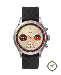 A Chronograph watch with a vintage-inspired 35.5mm case, crafted from stainless steel featuring a gold dial with a unique matte finish.