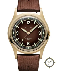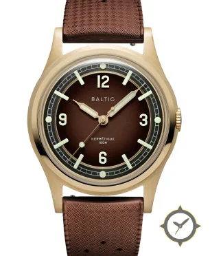 A Dive watch with a vintage-inspired 30mm case, crafted from bronze featuring a brown dial with a unique sunburst finish.