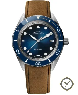 A Dive watch with a versatile 41mm case, that suits most wrists, crafted from stainless steel featuring a blue dial with a unique sunburst finish.