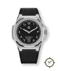A Luxury watch with a versatile 39mm case, that suits most wrists, crafted from stainless steel featuring a black dial with a unique triangular/tapisserie waffle (raised triangular guilloche) finish.