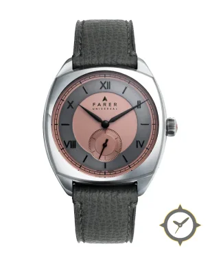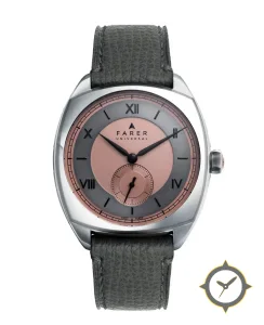 A Dress watch with a vintage-inspired 33mm case, crafted from stainless steel featuring a gray dial with a unique matte finish.