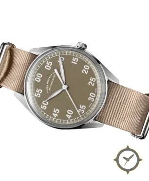 A Pilot watch with a bold 45mm presence on the wrist, crafted from stainless steel featuring a brown dial with a unique matte finish.