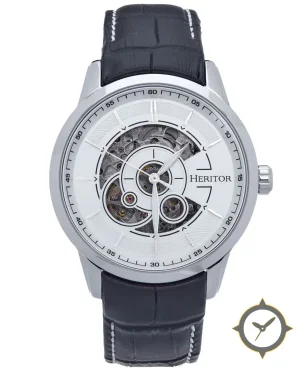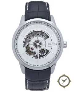 A Skeleton watch with a vintage-inspired 35.5mm case, crafted from stainless steel featuring a white dial with a unique openworked/skeleton with circular guilloché finish.