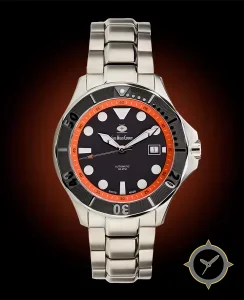 A Dive watch with a bold 46.5mm presence on the wrist, crafted from stainless steel featuring a black dial with a unique matte finish.