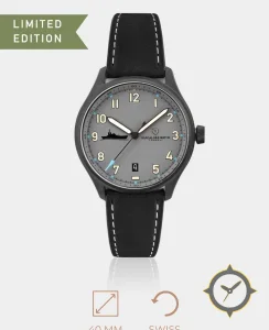 A Field watch with a bold 47mm presence on the wrist, crafted from stainless steel featuring a gray dial with a unique matte finish.