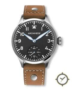 A Pilot watch with a vintage-inspired 34mm case, crafted from stainless steel featuring a black dial with a unique matte finish.