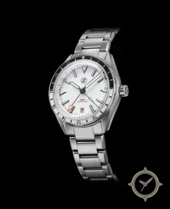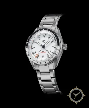 A GMT watch with a versatile 39.5mm case, that suits most wrists, crafted from stainless steel featuring a white dial with a unique matte finish and a true GMT complication for tracking a second time zone.