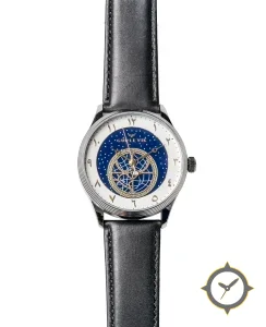 A Dress watch with a bold 45.5mm presence on the wrist, crafted from stainless steel featuring a blue dial with a unique glossy starry central disc with matte outer chapter ring finish.