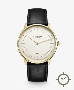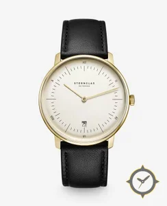 A Minimalist watch with a bold 42.5mm presence on the wrist, crafted from gold featuring a white dial with a unique grained finish.