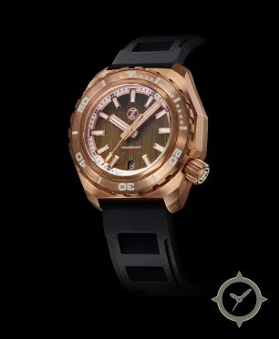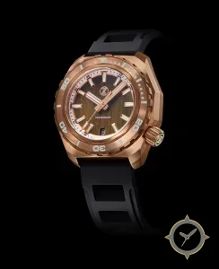 A Dive watch with a versatile 40mm case, that suits most wrists, crafted from bronze featuring a brown dial with a unique brushed sunburst finish.