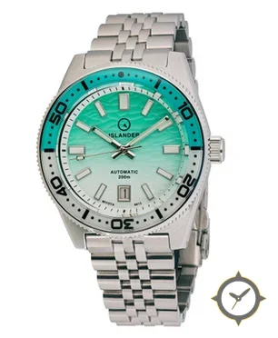 A Dive watch with a bold 43.5mm presence on the wrist, crafted from stainless steel featuring a turquoise dial with a unique wavy (gradient) finish.