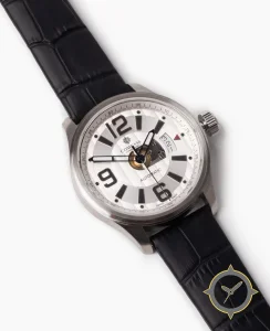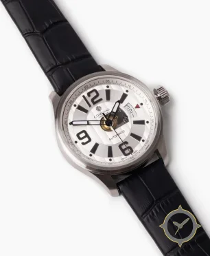 A Field watch with a versatile 39mm case, that suits most wrists, crafted from stainless steel featuring a white dial with a unique stepped concentric rings with an open-heart aperture finish.