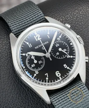 A Pilot watch with a bold 42mm presence on the wrist, crafted from stainless steel featuring a black dial with a unique matte finish.
