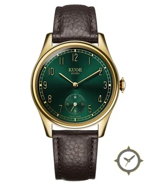 A Dress watch with a bold 42mm presence on the wrist, crafted from gold featuring a green dial with a unique sunburst finish.