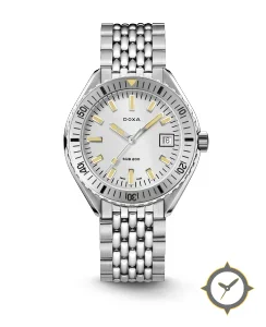 A Dive watch with a vintage-inspired 37mm case, crafted from stainless steel featuring a silver dial with a unique matte finish.
