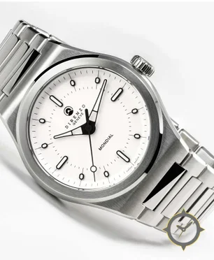 A Minimalist watch with a vintage-inspired 30.5mm case, crafted from stainless steel featuring a white dial with a unique smooth finish.