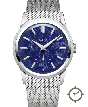 A Dress watch with a versatile 40mm case, that suits most wrists, crafted from stainless steel featuring a blue dial with a unique marble/stone texture finish.