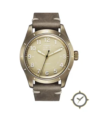 A Field watch with a versatile 38.5mm case, that suits most wrists, crafted from bronze featuring a yellow dial with a unique matte finish.
