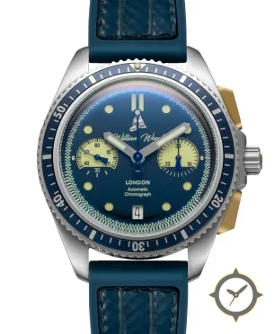 A Dive watch with a vintage-inspired 37.5mm case, crafted from stainless steel featuring a blue dial with a unique sunburst metallic finish.