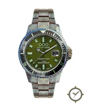 A Dive watch with a bold 47.5mm presence on the wrist, crafted from stainless steel featuring a green dial with a unique matte finish.