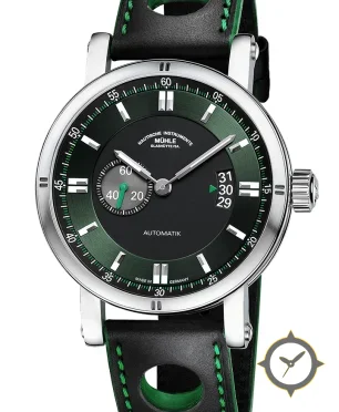 A Racing watch with a versatile 38.5mm case, that suits most wrists, crafted from stainless steel featuring a black dial with a unique brushed (sunburst) finish.