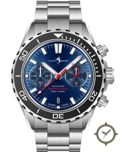 A Dive watch with a bold 47.5mm presence on the wrist, crafted from stainless steel featuring a blue dial with a unique sunburst radial gradient finish.