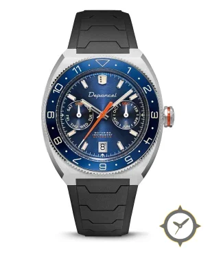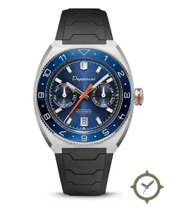A Driver watch with a bold 46mm presence on the wrist, crafted from stainless steel featuring a blue dial with a unique radial sunburst finish.