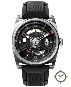 A Skeleton watch with a versatile 38.5mm case, that suits most wrists, crafted from stainless steel featuring a black dial with a unique open-worked / skeleton finish.