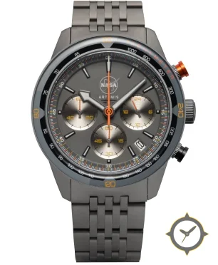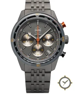 A Chronograph watch with a bold 44mm presence on the wrist, crafted from titanium featuring a gray dial with a unique matte metallic (brushed) finish.