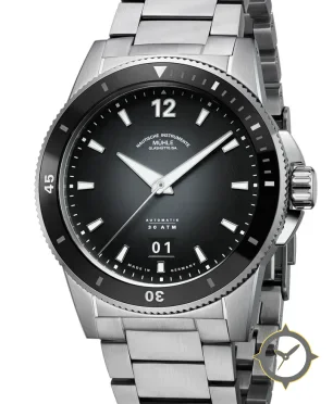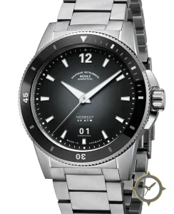 A Dive watch with a versatile 40.5mm case, that suits most wrists, crafted from stainless steel featuring a black dial with a unique fumé/sunburst gradient finish.