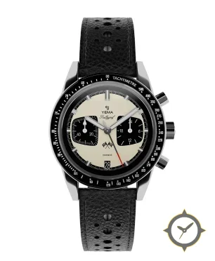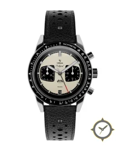 A Racing watch with a versatile 41mm case, that suits most wrists, crafted from stainless steel featuring a white dial with a unique matte finish.