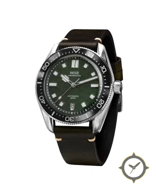 A Dive watch with a bold 43.5mm presence on the wrist, crafted from stainless steel featuring a green dial with a unique subtle raised herringbone/wave texture (Damascus-style pattern) finish.