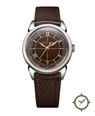 A Dress watch with a bold 45mm presence on the wrist, crafted from stainless steel featuring a brown dial with a unique radial sunburst gradient with slight matte finish finish.