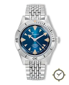 A Dive watch with a bold 45mm presence on the wrist, crafted from stainless steel featuring a blue dial with a unique sunburst finish.