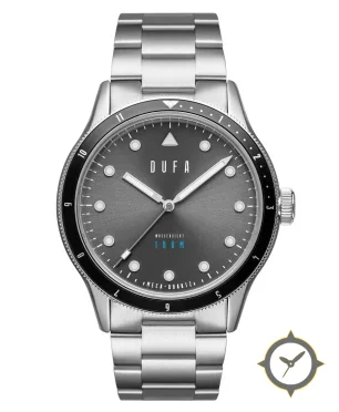 A Dive watch with a bold 41.5mm presence on the wrist, crafted from stainless steel featuring a gray dial with a unique sunburst finish.