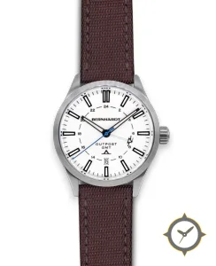 A GMT watch with a bold 47.5mm presence on the wrist, crafted from stainless steel featuring a white dial with a unique lacquer (matte) finish and a true GMT complication for tracking a second time zone.